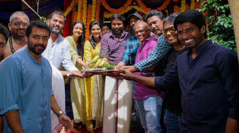 The most famous production company, named "2D Entertainment," joins hands with the upcoming director Era. Saravanan for an untitled movie. The Pooja for the film has begun today (28th November) at the corporate office of 'Agaram Foundations' here at Valasaravakkam, Chennai. This movie has a star casts of Suriya, Jyothika, Sasikumar, Samuthrakani, Soori, and Kalaiarasan in prominent roles.