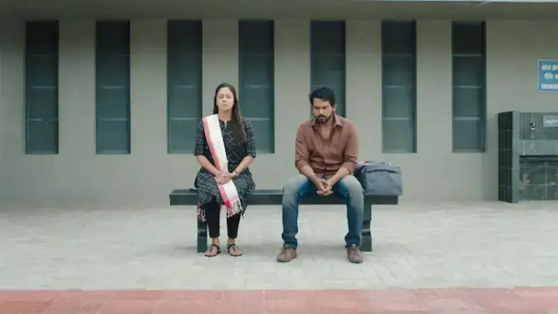 The first look poster of Thambi engrosses Karthi and Jyothika in a role sharing the screen space equally. Thambi's first look pictures half of Karthi and remaining with Jyothika with a police jeep in between. Now the teaser shares more information about the movie.