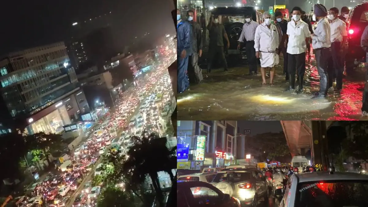 Heavy rains lashed Chennai from yesterday afternoon. Heavy rains continued for more than 10 hours, causing floods across the city. Major roads such as Annasalai, Poonamallee Periyar Highway, Marina Kamaraj Road and 100 Road were severely affected by the floods. In some places where rainwater had accumulated, vehicles were diverted.